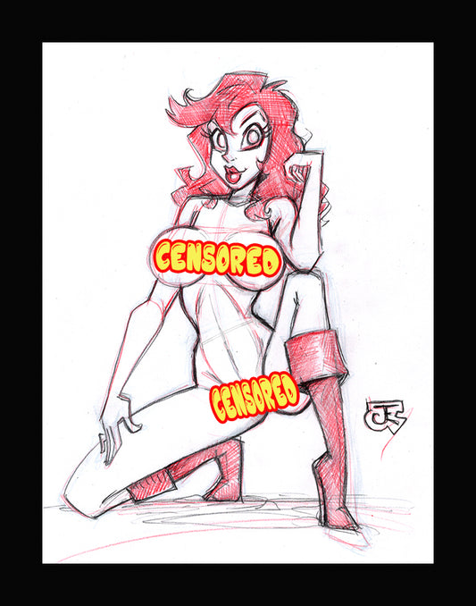 Jessica Cover Art (Red) (Original one of a kind) Drawing By Jeff Egli
