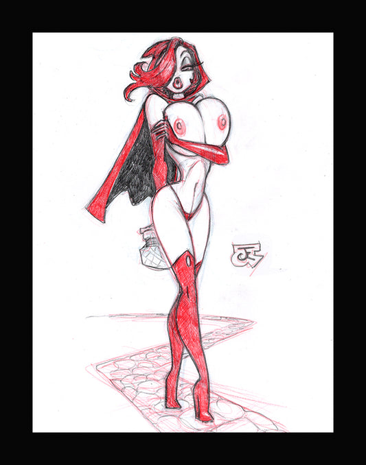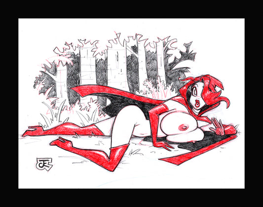Red Hot Riding Hood Cover Concept #1 (Original one of a kind) Drawing By Jeff Egli